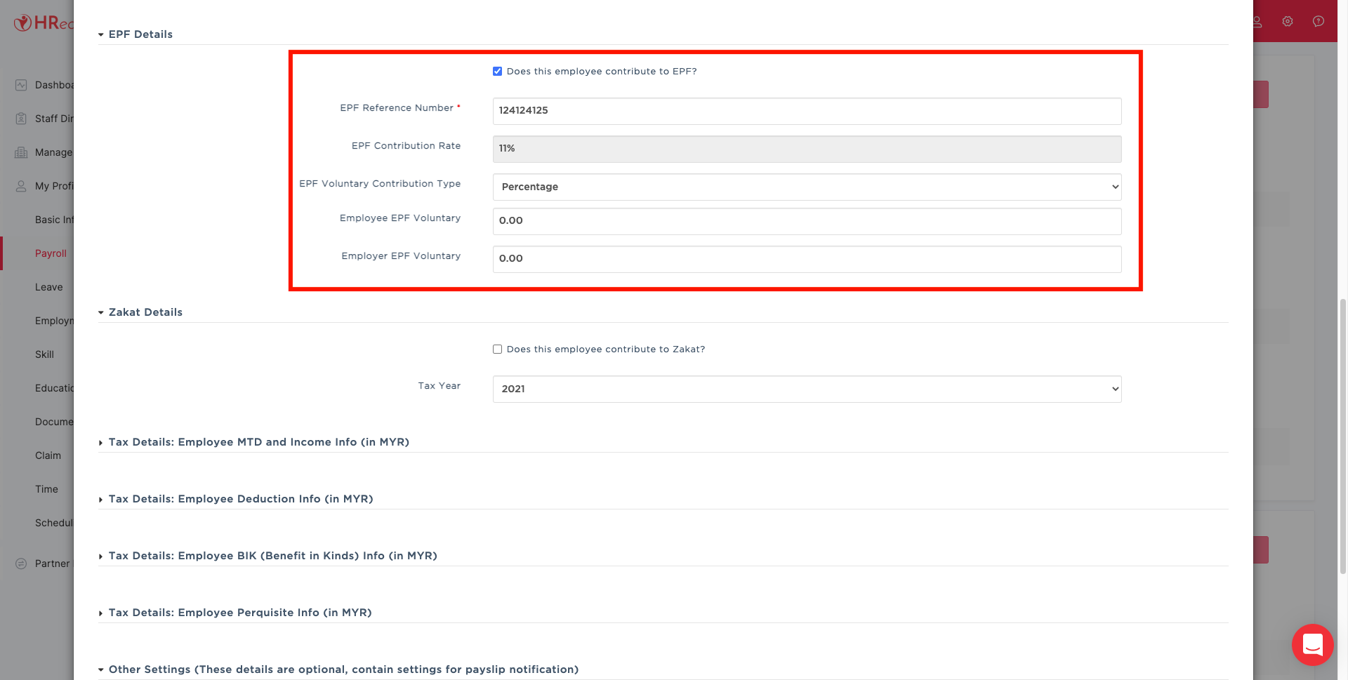 4. In the pop-up window, scroll down until you found EPF Details. Key in the necessary details.